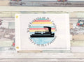 This is the perfect tote bag to take on your boating trip to your favorite lake. The design was a muted yellow circle that is out lined with a navy blue and light blue color. The phrase reads life is...